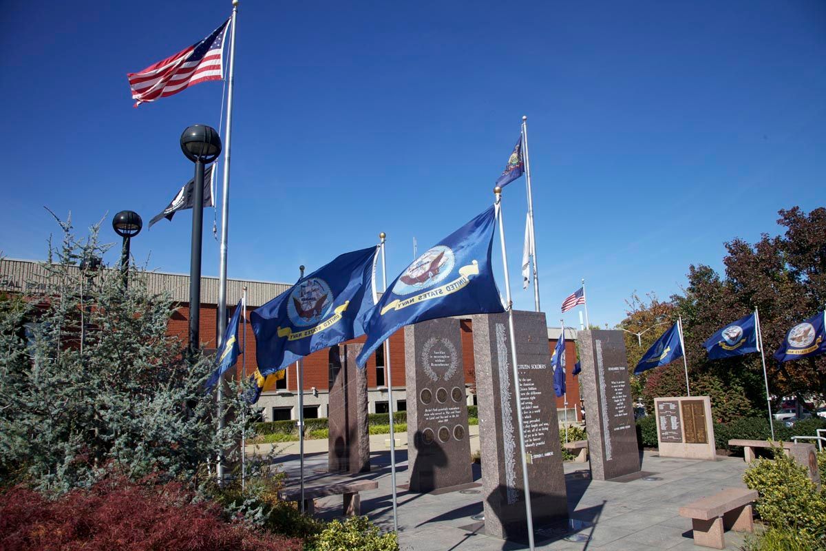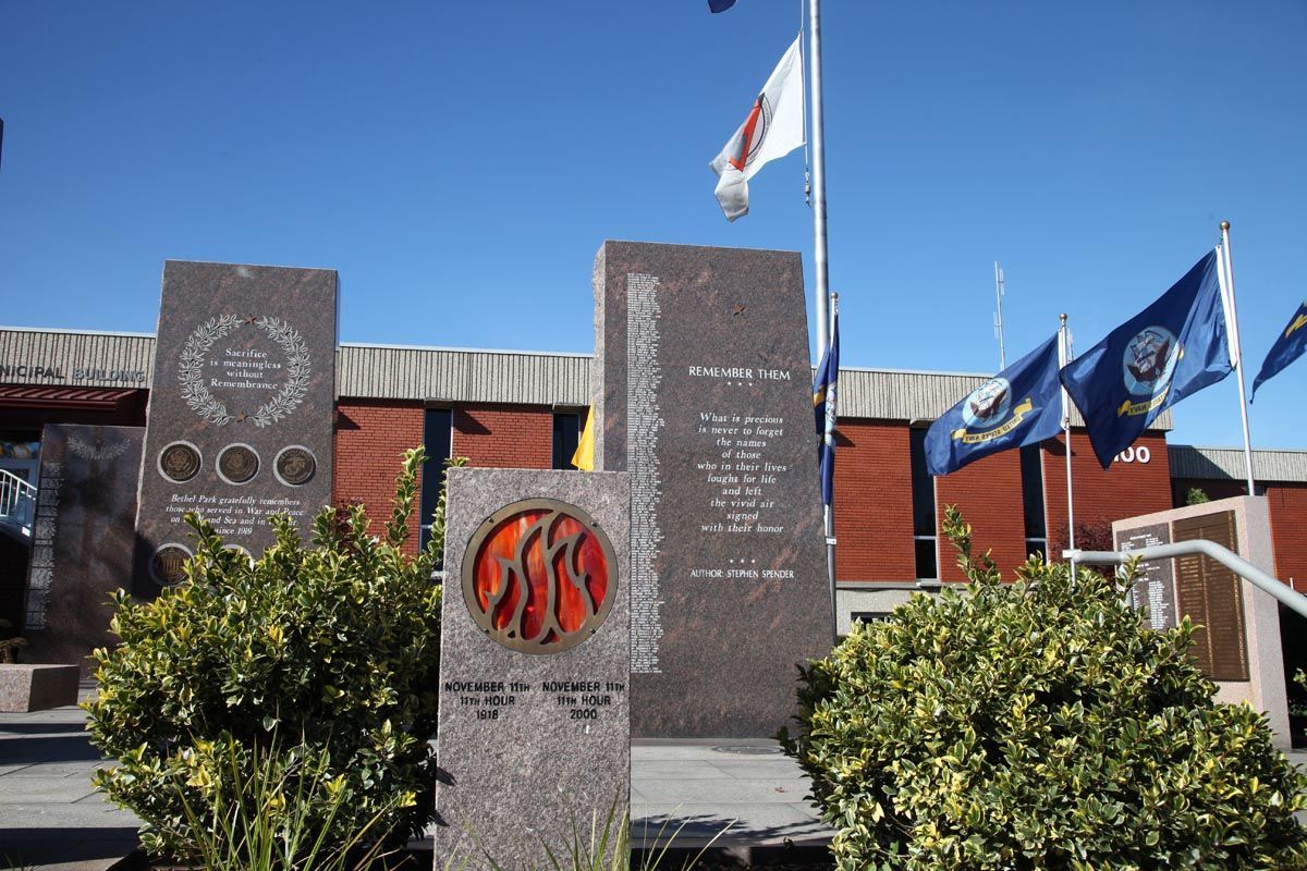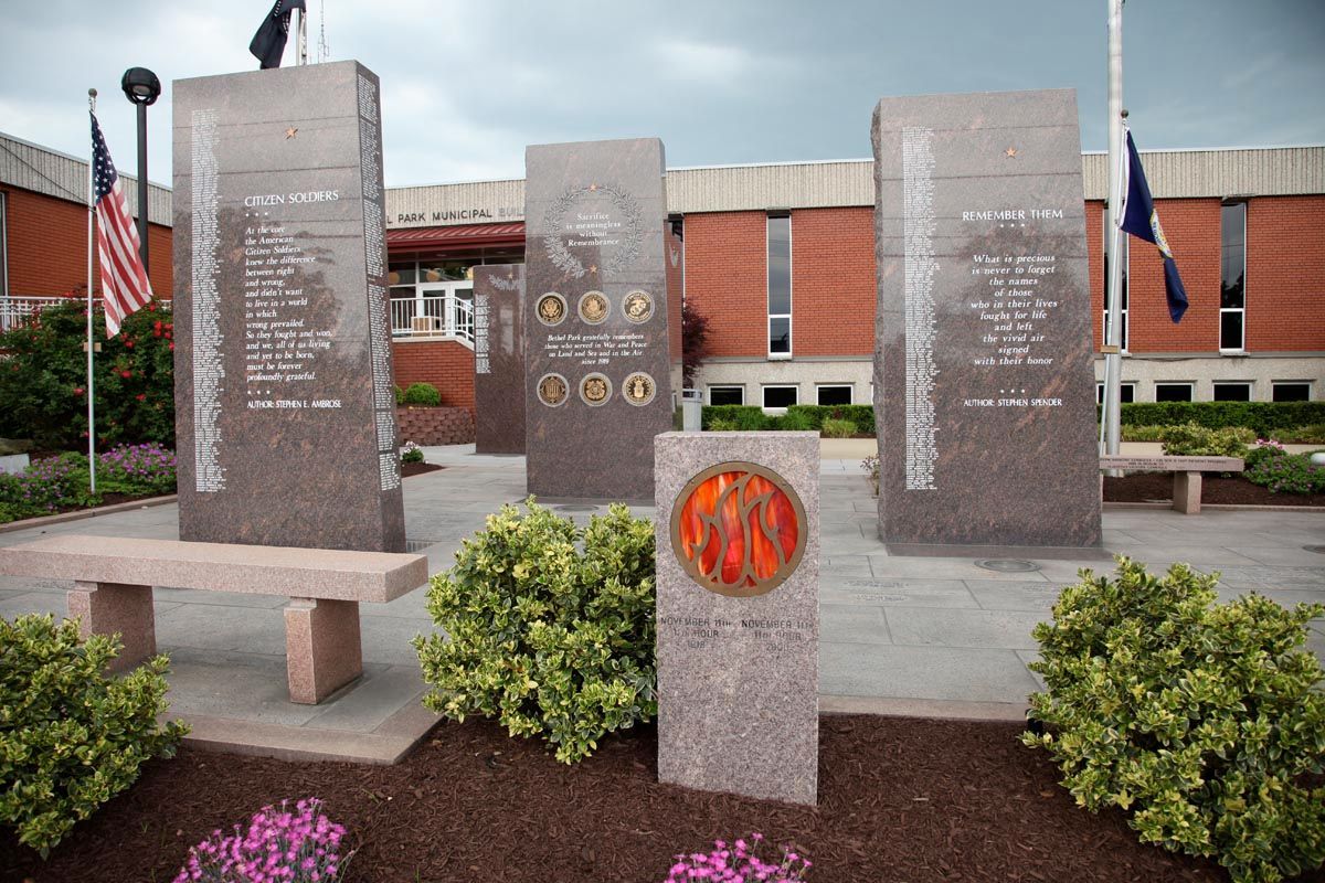 Located in the front plaza of the Bethel Park Municipal Building (5100 West Library Ave.), the Veterans Memorial is a beautiful destination to pay your respects to local veterans. The Memorial features a number of memorial stones and plaques and has frequently updated flags adorning the Plaza. The Bethel Park annual Memorial Day Program is also held at the Memorial.