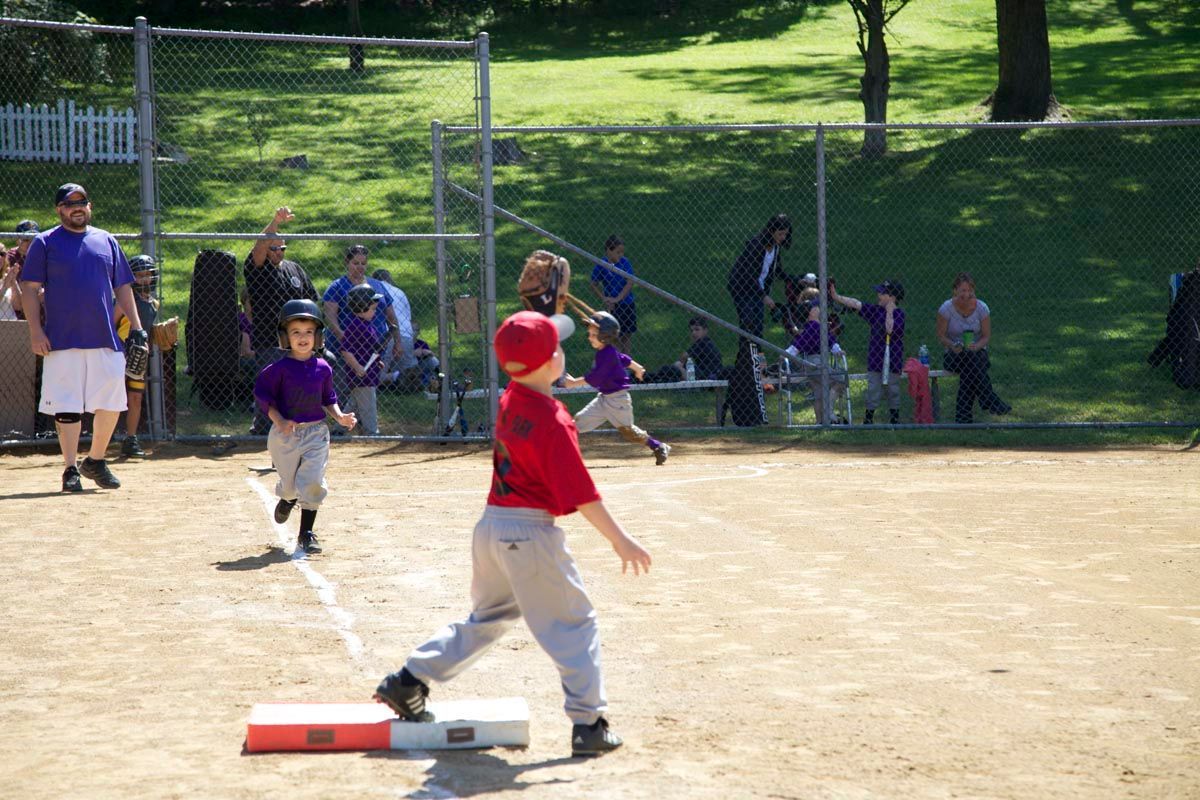 Pavilion w/ table, baseball fence, ½ basketball court, net tunnel, embankment slides, rope climber, embankment play items, race timer, swing set, 2-5 year play area |
