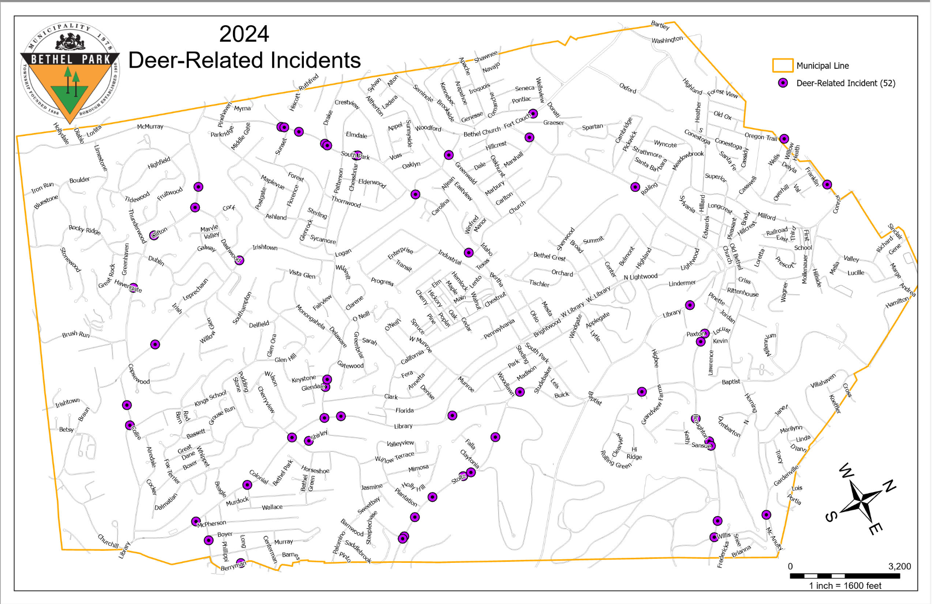 (Click the map below to view areas of reported deer/vehicle incidents in Bethel Park)
