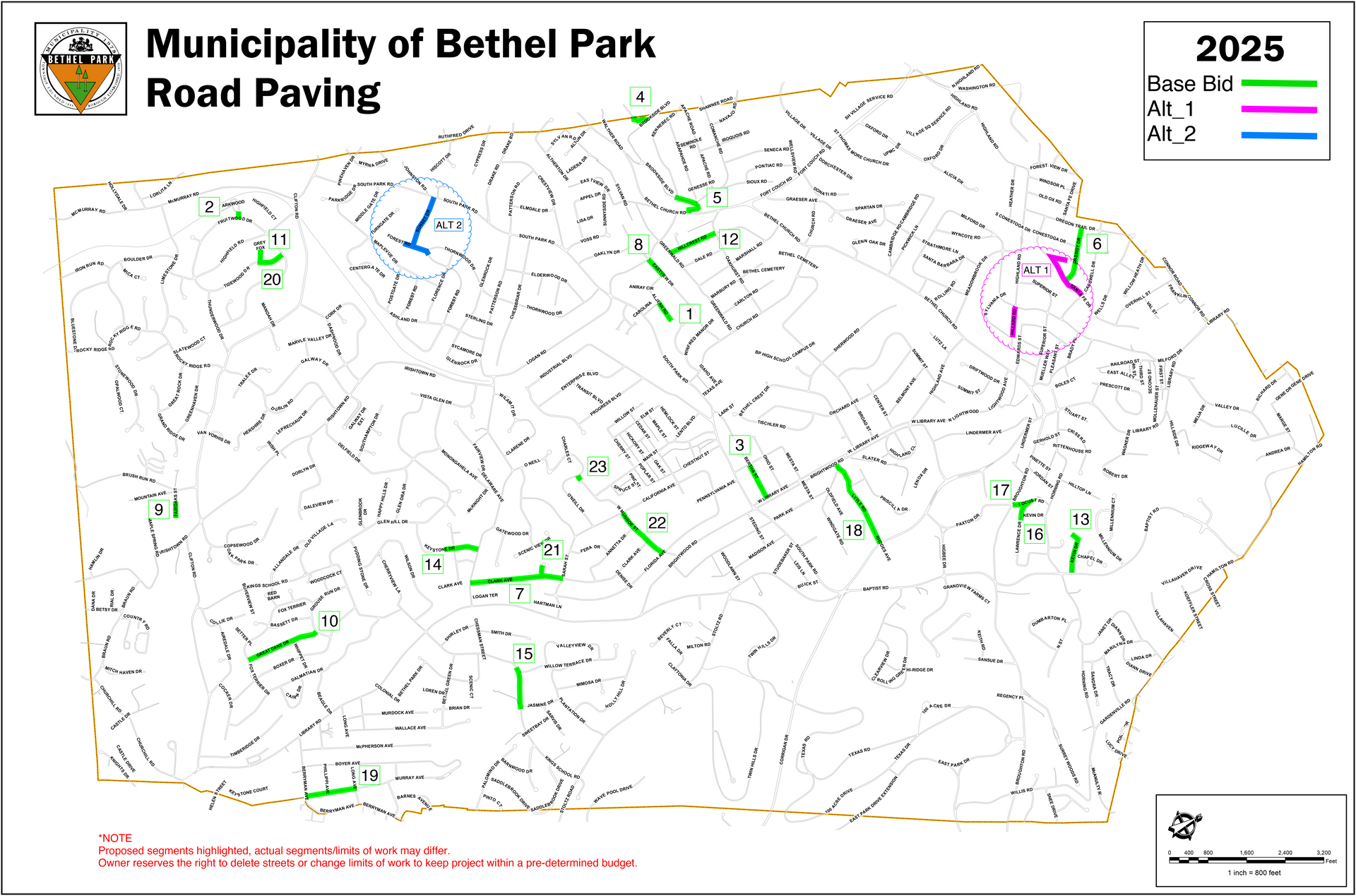 The Municipality of Bethel Park is made up of a 12 square mile area and is responsible for maintaining approximately 118 miles of road pavement over nine wards.